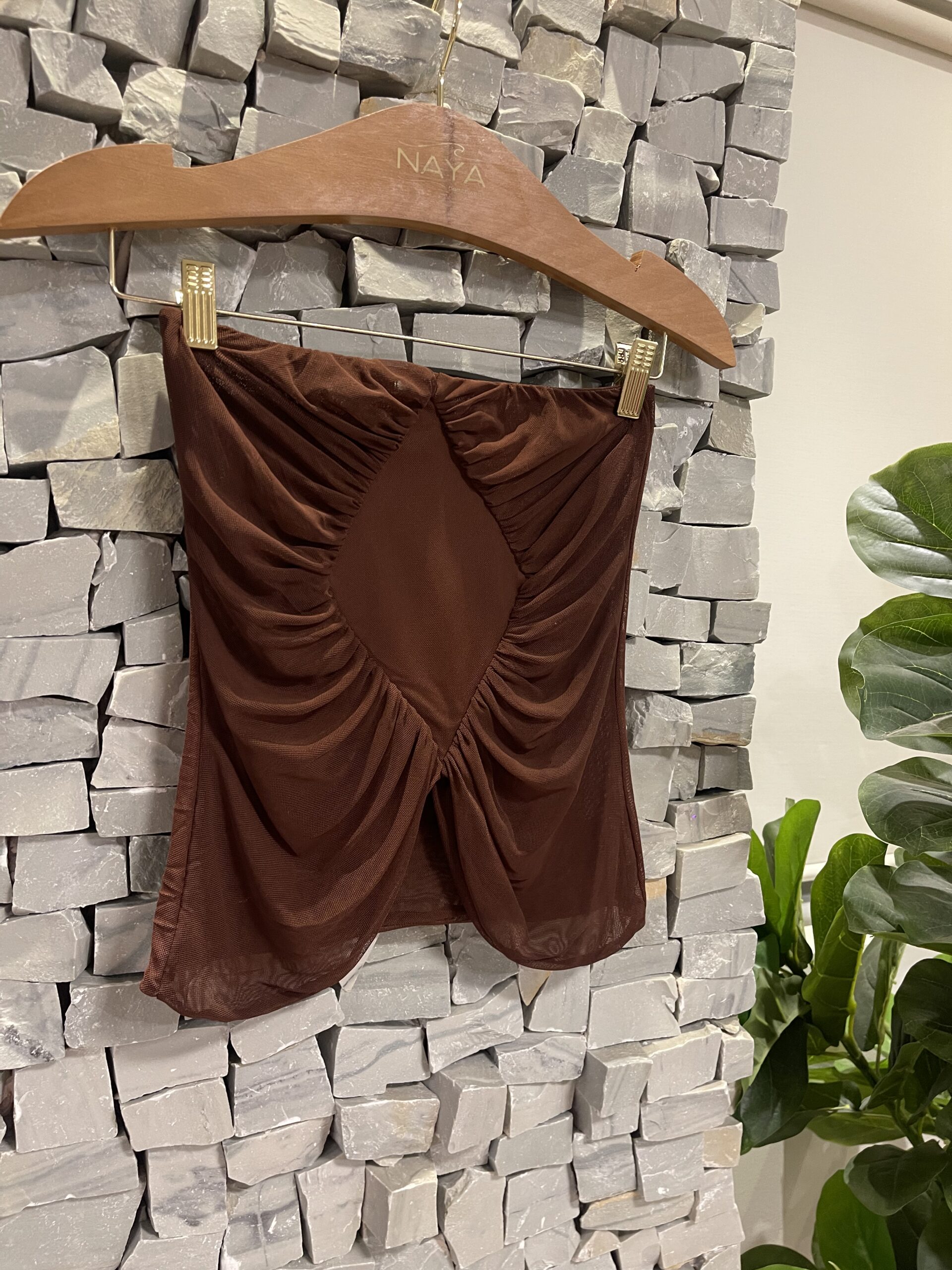 O decote no umbigo traz sensualidade na medida certa, revelando a pele de forma estratégica e atual. Uma peça que transita entre o fashion e o cool, perfeita para produções noturnas, beach clubs ou composições ousadas com alfaiataria.